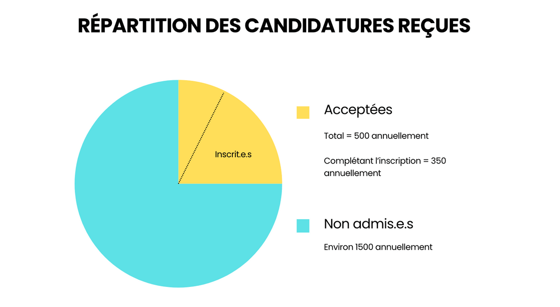 Au cours d’une année typique, les 17 ESA sondées admettent moins du quart des candidatures qu’elles attirent (environ 500 sur 2 000) ; environ 350 nouveaux étudiants s’inscrivent à la formation supérieure.